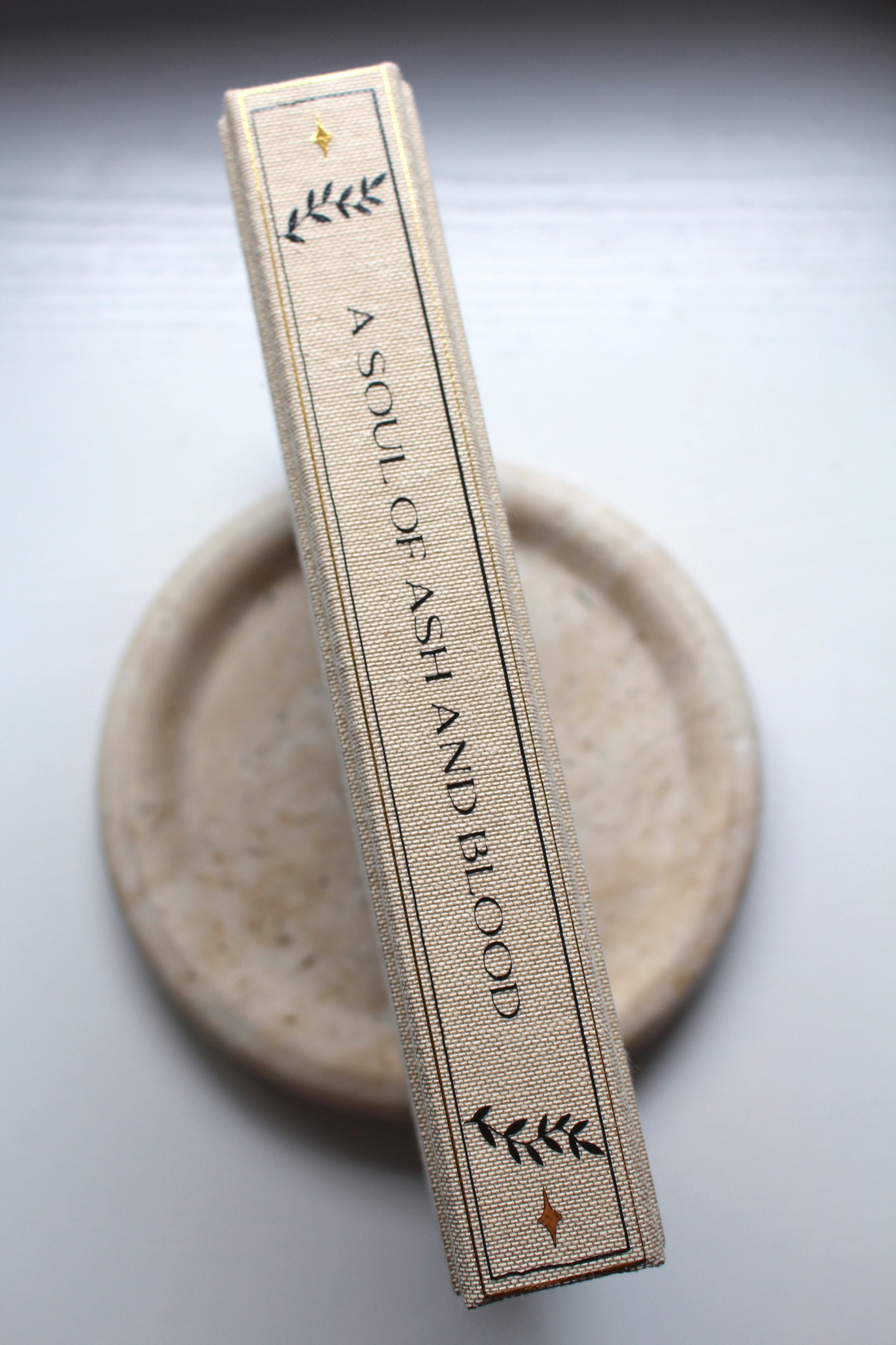 Rebound edition of A Soul of Ash and Blood by Jennifer L Armentrout bound into linen cloth with black and gold metallic heat transfer vinyl 🖤✨