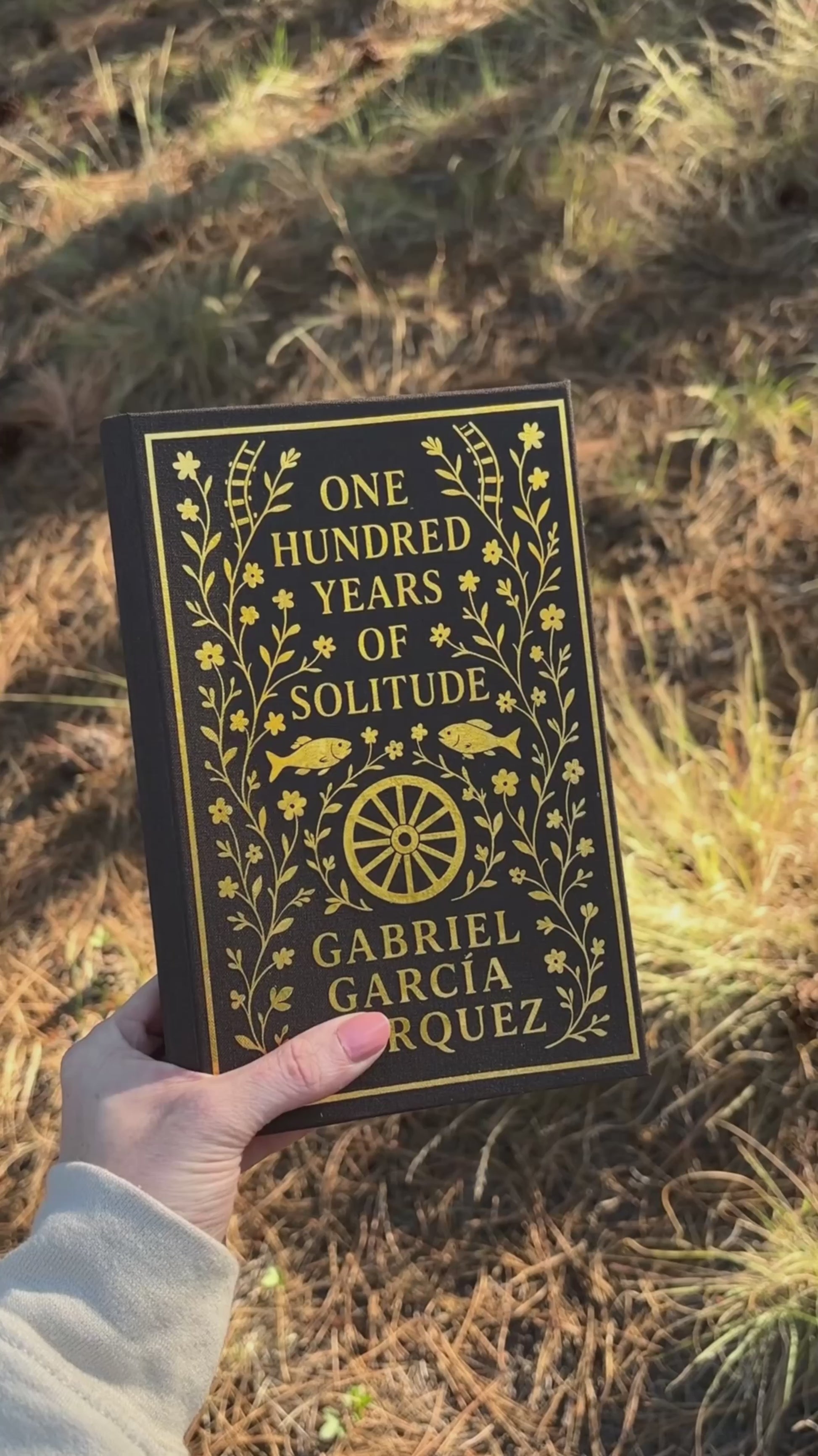This custom rebound edition of One Hundred Years of Solitude by Gabriel García Márquez features brown linen cloth (which can be changed) and gold HTV detailing on the cover. A beautifully crafted piece that blends elegance with timeless storytelling. 🌿🌟